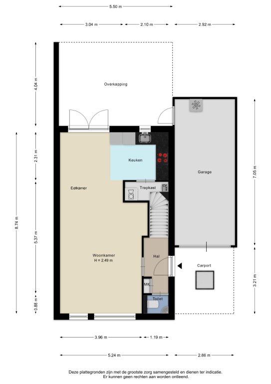 Alle door ons kantoor verstrekte informatie omtrent onroerende zaken, moet beschouwd worden als een uitnodiging om in onderhandeling te treden, en is geheel vrijblijvend! Alle vermelde maten en afmetingen zijn slechts bij benadering. Aan deze beperkte informatie kunnen geen rechten worden ontleend. Indien in enige documentatie of op enige website informatie staat die niet overeen komt met de werkelijkheid, dan geldt de feitelijke situatie waarin de woning zich bevindt, zoals koper deze tijdens de bezichtiging heeft kunnen waarnemen, en wordt de woning in deze feitelijke situatie/staat verkocht. Een (eventueel) bijgevoegde plattegrond dient uitsluitend als globale indicatie/visualisatie. Hieraan kunnen uitdrukkelijk geen rechten worden ontleend.