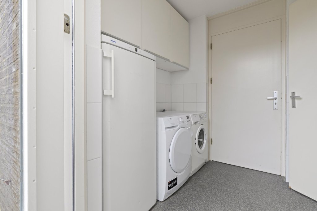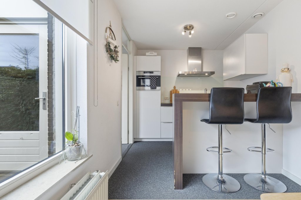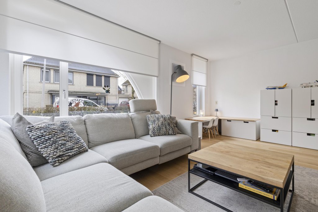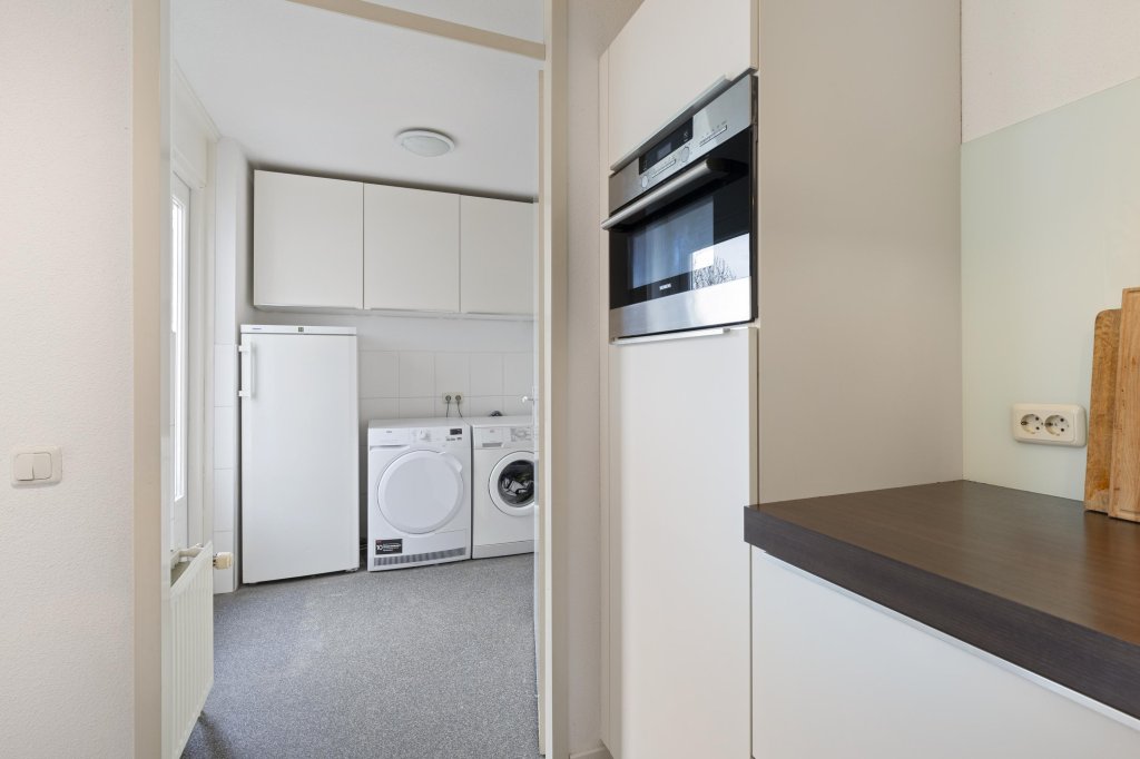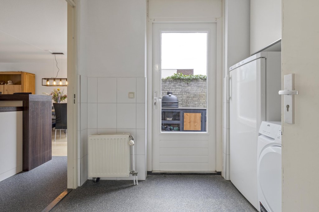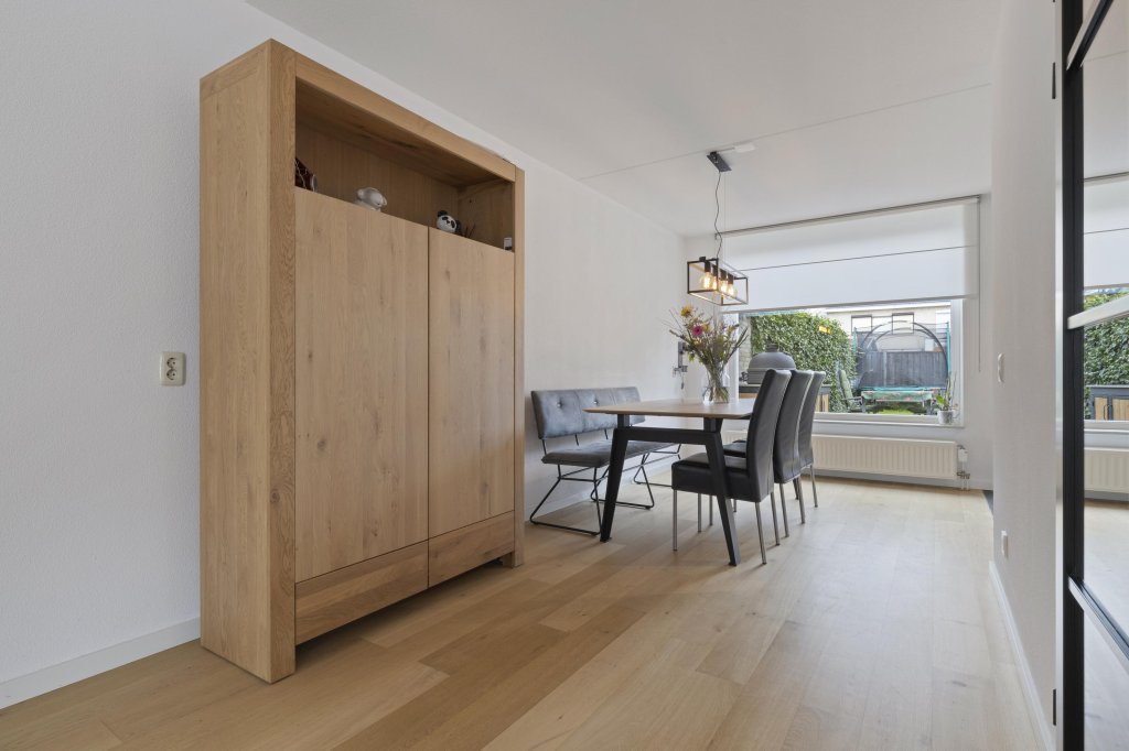 Via de entreehal met moderne toiletruimte en trapopgang betreedt u de begane grond. De lichte woonkamer met parketvloer voelt direct prettig aan en vormt een fijne leefruimte voor het hele gezin. Aan de achterzijde is de nette open keuken gesitueerd en beschikt over de navolgende apparatuur: 4-pits inductiekookplaat, afzuigkap, vaatwasser, koelkast en combi-oven. Vanuit de keuken bereikt u de praktische bijkeuken met aansluitingen voor wasmachine en droger. Via de bijkeuken betreedt u de garage en de achtertuin.