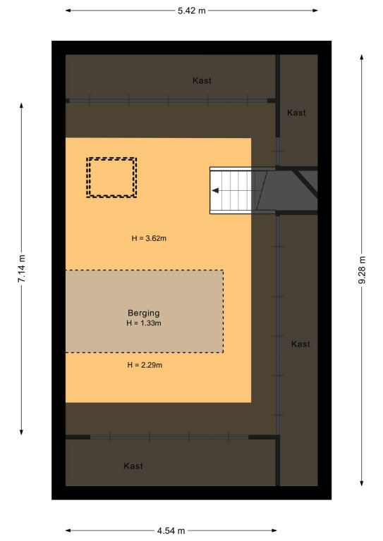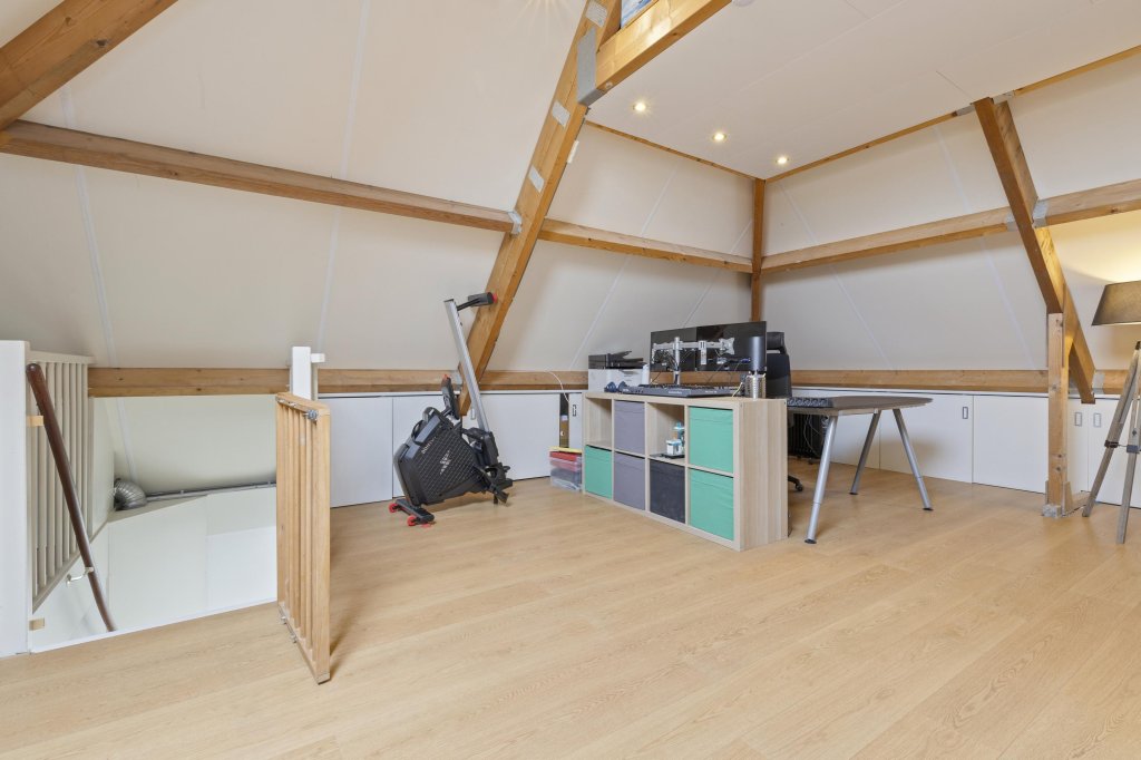 De tweede verdieping biedt toegang tot de ruime vierde slaapkamer ca. 32 m² met dakraam en vliering voor extra opslag.