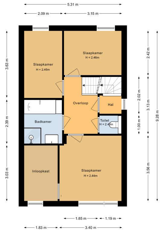 - Slaapkamer 3: ca. 18 m² met inloopkast.