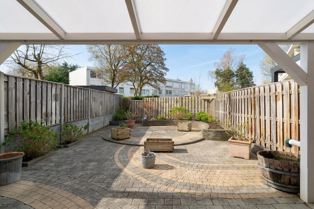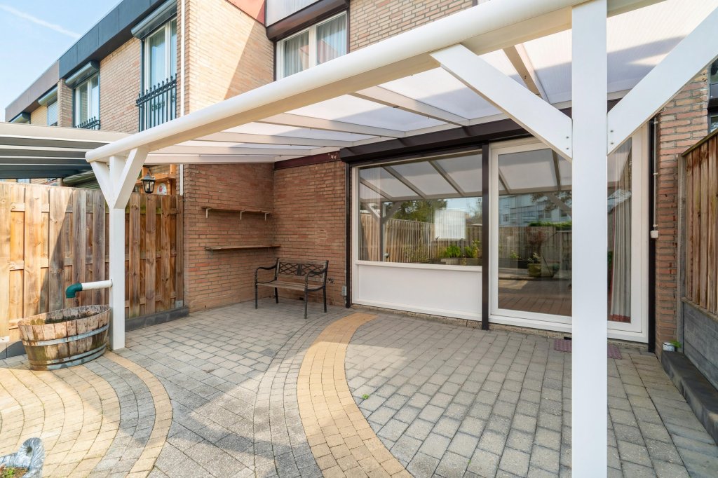 De verzorgde achtertuin is van alle gemakken voorzien. Onder de sfeervolle terrasoverkapping is het heerlijk ontspannen, borrelen of lang tafelen met familie en vrienden. De tuin beschikt daarnaast over een achteringang, terras en borders.