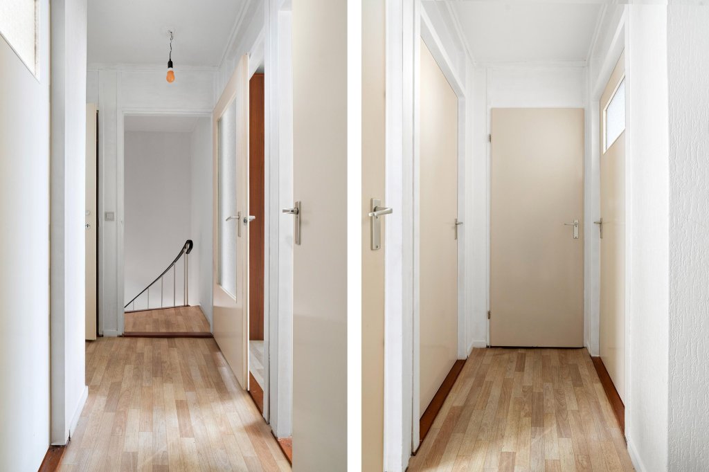De overloop biedt toegang tot drie slaapkamers, bergkast, cv-ruimte en de badkamer.