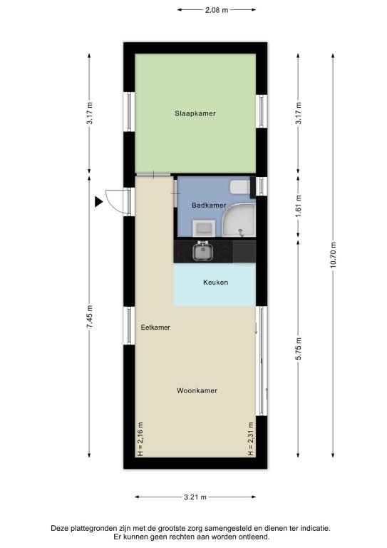 Alle door ons kantoor verstrekte informatie omtrent onroerende zaken, moet beschouwd worden als een uitnodiging om in onderhandeling te treden, en is geheel vrijblijvend! Alle vermelde maten en afmetingen zijn slechts bij benadering. Aan deze beperkte informatie kunnen geen rechten worden ontleend. Indien in enige documentatie of op enige website informatie staat die niet overeen komt met de werkelijkheid, dan geldt de feitelijke situatie waarin de woning zich bevindt, zoals koper deze tijdens de bezichtiging heeft kunnen waarnemen, en wordt de woning in deze feitelijke situatie/staat verkocht. Een (eventueel) bijgevoegde plattegrond dient uitsluitend als globale indicatie/visualisatie. Hieraan kunnen uitdrukkelijk geen rechten worden ontleend.